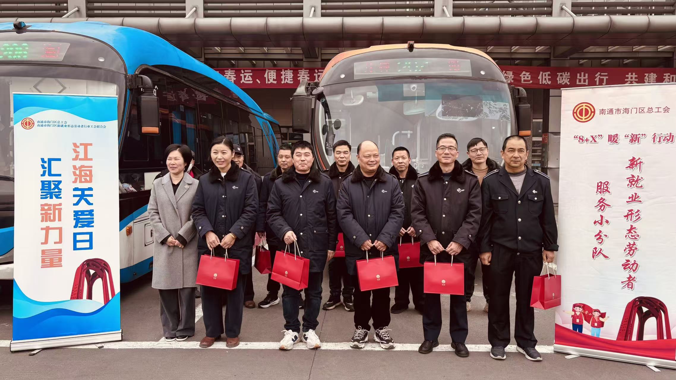 岁末年终,情暖人心。2026年2月5日下午,海门区总工会仇主席带领送温暖慰问组一行来到海门飞鹤公交公司,看望慰问奋战在春运一线的公交职工,为坚守在一线的公交驾驶员送上保温杯,向他们致以新春的问候和祝福,传递党和政府的关怀与温暖。